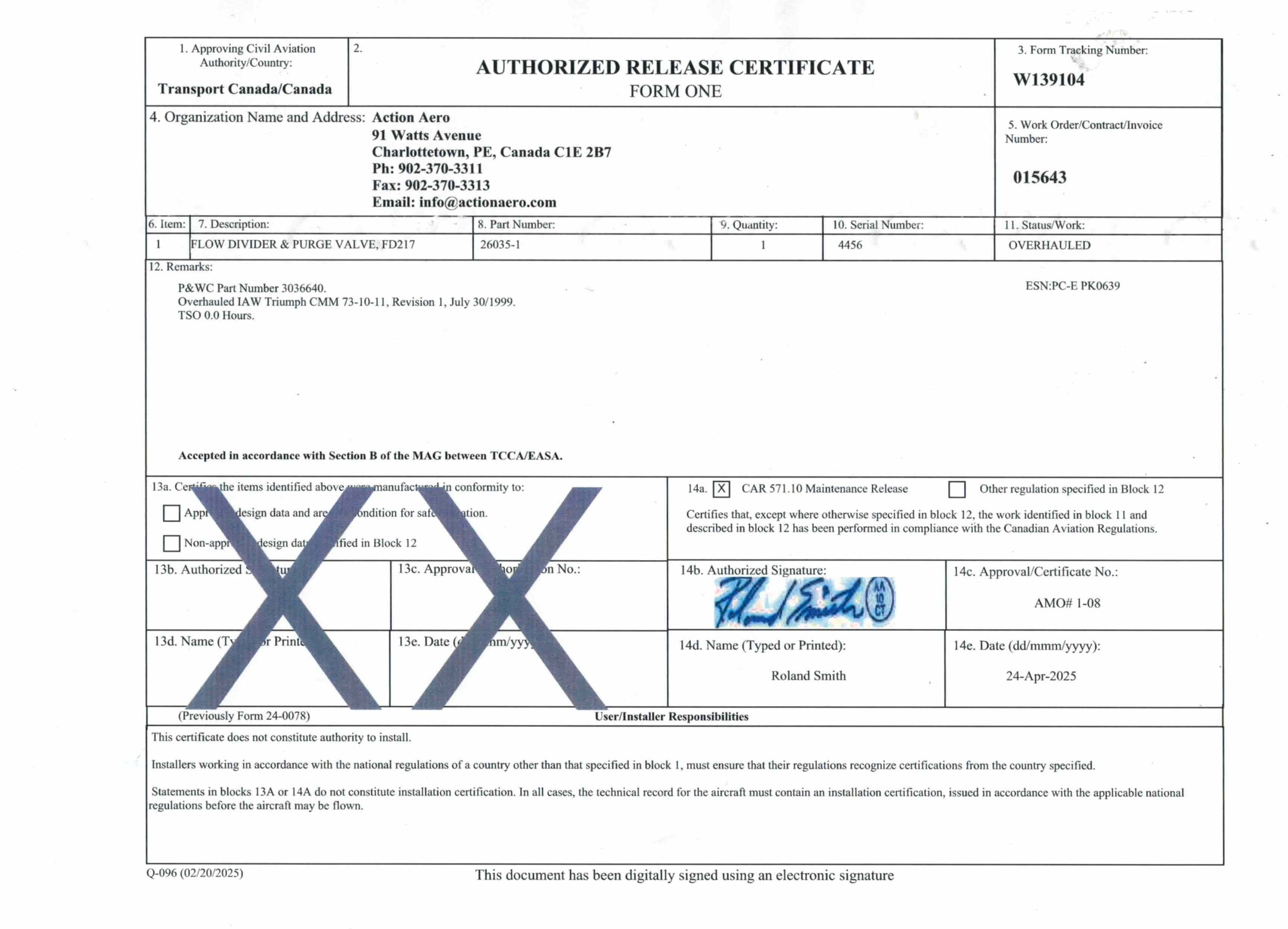 FLOW DIVIDER & PURGE VALVE Overhauled